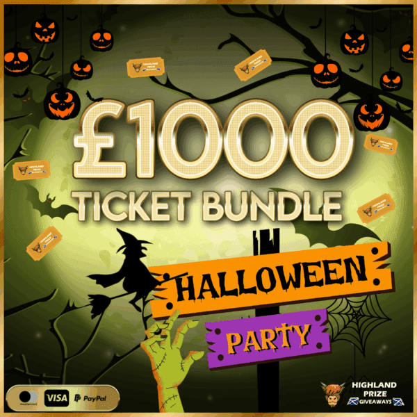 This competition is open to UK residents aged 18 or over. You may enter this competition up to 175 times. You will be randomly allocated ticket number(s) when ordering and will receive an email confirmation. The total amount of tickets for this competition is (1500). If all tickets do not sell out, the draw will happen on November 1, 2024 regardless. You must answer the competition question correctly to be entered into the live draw. Incorrect entries will not be notified or entered into the live draw. You may enter the competition online, or for free by post by sending your entry to Highland Prize Giveaways on a postcard. You must have an account on Highland Prize Giveaways for your entry to be processed. All details on your entry MUST correspond to the details on your account to receive the order confirmation and ticket number. Postal entries received without a registered account cannot be processed. The live draw will take place on Highland Prize Giveaways’s Facebook page using Google’s random number generator to select the winning ticket number from all Entrants. This competition is in no way sponsored, endorsed, administered by or associated with Facebook, Apple or Google. By entering the competition, Entrants agree that neither Facebook, Apple nor Google have any liability and are not responsible for the administration or promotion of this competition.