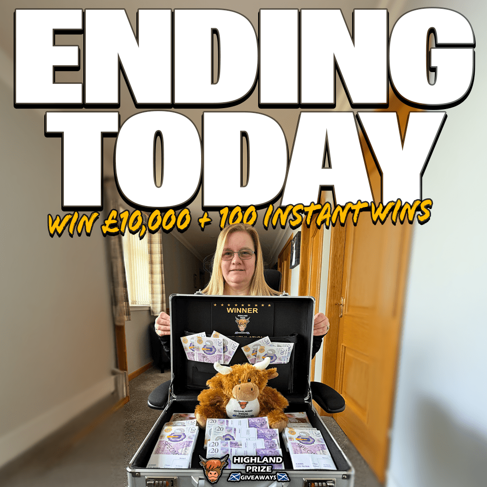 This competition is open to UK residents aged 18 or over. You may enter this competition up to 3750 times. You will be randomly allocated ticket number(s) when ordering and will receive an email confirmation. The total amount of tickets for this competition is (75000). If all tickets do not sell out, the draw will happen on March 27, 2026 regardless. You must answer the competition question correctly to be entered into the live draw. Incorrect entries will not be notified or entered into the live draw. You may enter the competition online, or for free by post by sending your entry to Highland Prize Giveaways on a postcard. You must have an account on Highland Prize Giveaways for your entry to be processed. All details on your entry MUST correspond to the details on your account to receive the order confirmation and ticket number. Postal entries received without a registered account cannot be processed. The live draw will take place on Highland Prize Giveaways’s Facebook page using Google’s random number generator to select the winning ticket number from all Entrants. This competition is in no way sponsored, endorsed, administered by or associated with Facebook, Apple or Google. By entering the competition, Entrants agree that neither Facebook, Apple nor Google have any liability and are not responsible for the administration or promotion of this competition.