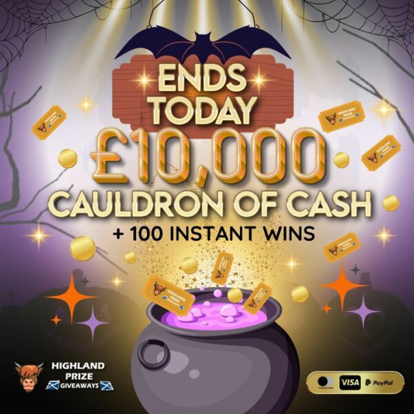 This competition is open to UK residents aged 18 or over. You may enter this competition up to 1500 times. You will be randomly allocated ticket number(s) when ordering and will receive an email confirmation. The total amount of tickets for this competition is (22500). If all tickets do not sell out, the draw will happen on November 1, 2024 regardless. You must answer the competition question correctly to be entered into the live draw. Incorrect entries will not be notified or entered into the live draw. You may enter the competition online, or for free by post by sending your entry to Highland Prize Giveaways on a postcard. You must have an account on Highland Prize Giveaways for your entry to be processed. All details on your entry MUST correspond to the details on your account to receive the order confirmation and ticket number. Postal entries received without a registered account cannot be processed. The live draw will take place on Highland Prize Giveaways’s Facebook page using Google’s random number generator to select the winning ticket number from all Entrants. This competition is in no way sponsored, endorsed, administered by or associated with Facebook, Apple or Google. By entering the competition, Entrants agree that neither Facebook, Apple nor Google have any liability and are not responsible for the administration or promotion of this competition.