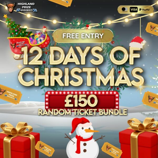 This competition is open to UK residents aged 18 or over. You may enter this competition up to 1 times. You will be randomly allocated ticket number(s) when ordering and will receive an email confirmation. The total amount of tickets for this competition is (500). If all tickets do not sell out, the draw will happen on December 22, 2024 regardless. You must answer the competition question correctly to be entered into the live draw. Incorrect entries will not be notified or entered into the live draw. You may enter the competition online, or for free by post by sending your entry to Highland Prize Giveaways on a postcard. You must have an account on Highland Prize Giveaways for your entry to be processed. All details on your entry MUST correspond to the details on your account to receive the order confirmation and ticket number. Postal entries received without a registered account cannot be processed. The live draw will take place on Highland Prize Giveaways’s Facebook page using Google’s random number generator to select the winning ticket number from all Entrants. This competition is in no way sponsored, endorsed, administered by or associated with Facebook, Apple or Google. By entering the competition, Entrants agree that neither Facebook, Apple nor Google have any liability and are not responsible for the administration or promotion of this competition.