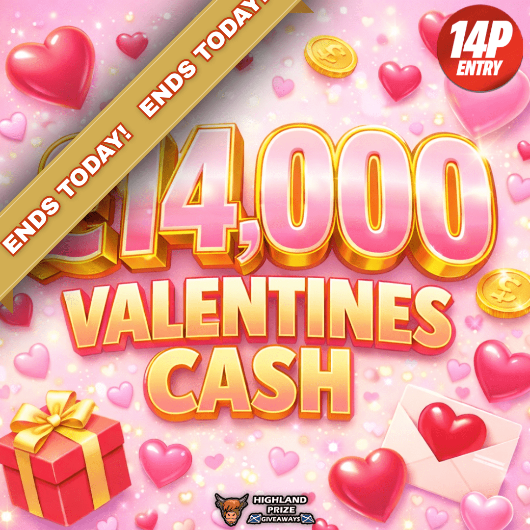 This competition is open to UK residents aged 18 or over. You may enter this competition up to 10000 times. You will be randomly allocated ticket number(s) when ordering and will receive an email confirmation. The total amount of tickets for this competition is (200000). If all tickets do not sell out, the draw will happen on February 13, 2026 regardless. You must answer the competition question correctly to be entered into the live draw. Incorrect entries will not be notified or entered into the live draw. You may enter the competition online, or for free by post by sending your entry to Highland Prize Giveaways on a postcard. You must have an account on Highland Prize Giveaways for your entry to be processed. All details on your entry MUST correspond to the details on your account to receive the order confirmation and ticket number. Postal entries received without a registered account cannot be processed. The live draw will take place on Highland Prize Giveaways’s Facebook page using Google’s random number generator to select the winning ticket number from all Entrants. This competition is in no way sponsored, endorsed, administered by or associated with Facebook, Apple or Google. By entering the competition, Entrants agree that neither Facebook, Apple nor Google have any liability and are not responsible for the administration or promotion of this competition.