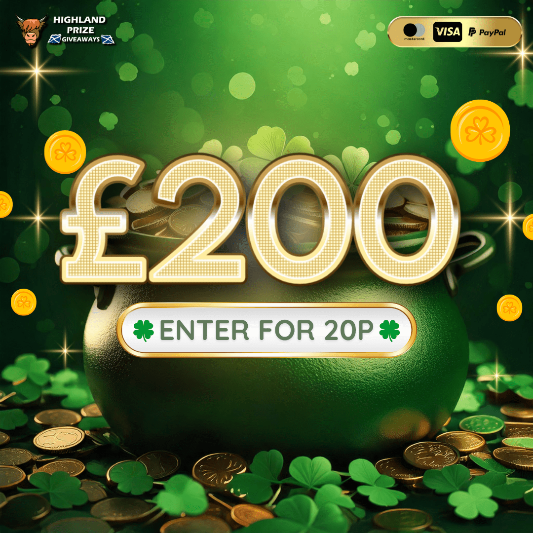 This competition is open to UK residents aged 18 or over. You may enter this competition up to 150 times. You will be randomly allocated ticket number(s) when ordering and will receive an email confirmation. The total amount of tickets for this competition is (1500). If all tickets do not sell out, the draw will happen on February 22, 2025 regardless. You must answer the competition question correctly to be entered into the live draw. Incorrect entries will not be notified or entered into the live draw. You may enter the competition online, or for free by post by sending your entry to Highland Prize Giveaways on a postcard. You must have an account on Highland Prize Giveaways for your entry to be processed. All details on your entry MUST correspond to the details on your account to receive the order confirmation and ticket number. Postal entries received without a registered account cannot be processed. The live draw will take place on Highland Prize Giveaways’s Facebook page using Google’s random number generator to select the winning ticket number from all Entrants. This competition is in no way sponsored, endorsed, administered by or associated with Facebook, Apple or Google. By entering the competition, Entrants agree that neither Facebook, Apple nor Google have any liability and are not responsible for the administration or promotion of this competition.