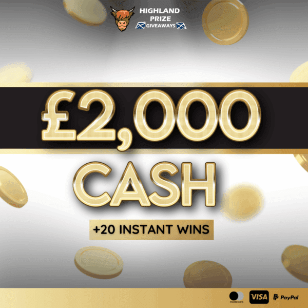 This competition is open to UK residents aged 18 or over. You may enter this competition up to 225 times. You will be randomly allocated ticket number(s) when ordering and will receive an email confirmation. The total amount of tickets for this competition is (2250). If all tickets do not sell out, the draw will happen on September 13, 2024 regardless. You must answer the competition question correctly to be entered into the live draw. Incorrect entries will not be notified or entered into the live draw. You may enter the competition online, or for free by post by sending your entry to Highland Prize Giveaways on a postcard. You must have an account on Highland Prize Giveaways for your entry to be processed. All details on your entry MUST correspond to the details on your account to receive the order confirmation and ticket number. Postal entries received without a registered account cannot be processed. The live draw will take place on Highland Prize Giveaways’s Facebook page using Google’s random number generator to select the winning ticket number from all Entrants. This competition is in no way sponsored, endorsed, administered by or associated with Facebook, Apple or Google. By entering the competition, Entrants agree that neither Facebook, Apple nor Google have any liability and are not responsible for the administration or promotion of this competition.