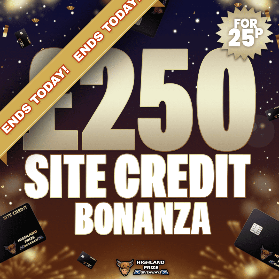 This competition is open to UK residents aged 18 or over. You may enter this competition up to 1975 times. You will be randomly allocated ticket number(s) when ordering and will receive an email confirmation. The total amount of tickets for this competition is (39500). If all tickets do not sell out, the draw will happen on January 7, 2026 regardless. You must answer the competition question correctly to be entered into the live draw. Incorrect entries will not be notified or entered into the live draw. You may enter the competition online, or for free by post by sending your entry to Highland Prize Giveaways on a postcard. You must have an account on Highland Prize Giveaways for your entry to be processed. All details on your entry MUST correspond to the details on your account to receive the order confirmation and ticket number. Postal entries received without a registered account cannot be processed. The live draw will take place on Highland Prize Giveaways’s Facebook page using Google’s random number generator to select the winning ticket number from all Entrants. This competition is in no way sponsored, endorsed, administered by or associated with Facebook, Apple or Google. By entering the competition, Entrants agree that neither Facebook, Apple nor Google have any liability and are not responsible for the administration or promotion of this competition.