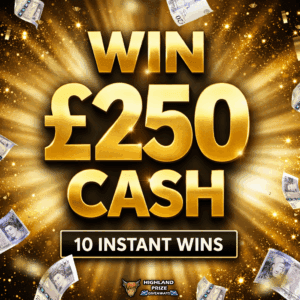 This competition is open to UK residents aged 18 or over. You may enter this competition up to 15 times. You will be randomly allocated ticket number(s) when ordering and will receive an email confirmation. The total amount of tickets for this competition is (325). If all tickets do not sell out, the draw will happen on July 14, 2025 regardless. You must answer the competition question correctly to be entered into the live draw. Incorrect entries will not be notified or entered into the live draw. You may enter the competition online, or for free by post by sending your entry to Highland Prize Giveaways on a postcard. You must have an account on Highland Prize Giveaways for your entry to be processed. All details on your entry MUST correspond to the details on your account to receive the order confirmation and ticket number. Postal entries received without a registered account cannot be processed. The live draw will take place on Highland Prize Giveaways’s Facebook page using Google’s random number generator to select the winning ticket number from all Entrants. This competition is in no way sponsored, endorsed, administered by or associated with Facebook, Apple or Google. By entering the competition, Entrants agree that neither Facebook, Apple nor Google have any liability and are not responsible for the administration or promotion of this competition.