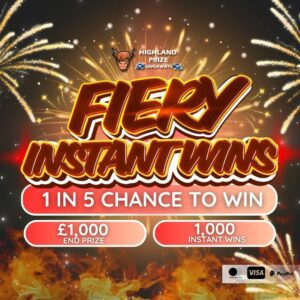 This competition is open to UK residents aged 18 or over. You may enter this competition up to 250 times. You will be randomly allocated ticket number(s) when ordering and will receive an email confirmation. The total amount of tickets for this competition is (3000). If all tickets do not sell out, the draw will happen on March 5, 2025 regardless. You must answer the competition question correctly to be entered into the live draw. Incorrect entries will not be notified or entered into the live draw. You may enter the competition online, or for free by post by sending your entry to Highland Prize Giveaways on a postcard. You must have an account on Highland Prize Giveaways for your entry to be processed. All details on your entry MUST correspond to the details on your account to receive the order confirmation and ticket number. Postal entries received without a registered account cannot be processed. The live draw will take place on Highland Prize Giveaways’s Facebook page using Google’s random number generator to select the winning ticket number from all Entrants. This competition is in no way sponsored, endorsed, administered by or associated with Facebook, Apple or Google. By entering the competition, Entrants agree that neither Facebook, Apple nor Google have any liability and are not responsible for the administration or promotion of this competition.