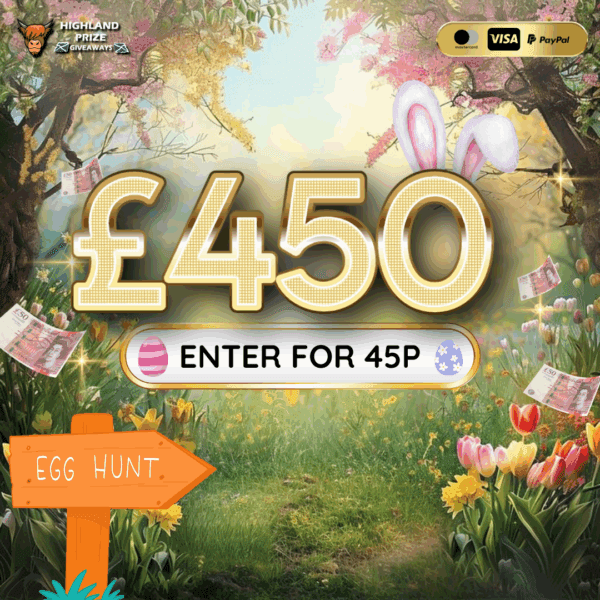 This competition is open to UK residents aged 18 or over. You may enter this competition up to 150 times. You will be randomly allocated ticket number(s) when ordering and will receive an email confirmation. The total amount of tickets for this competition is (1500). If all tickets do not sell out, the draw will happen on April 13, 2025 regardless. You must answer the competition question correctly to be entered into the live draw. Incorrect entries will not be notified or entered into the live draw. You may enter the competition online, or for free by post by sending your entry to Highland Prize Giveaways on a postcard. You must have an account on Highland Prize Giveaways for your entry to be processed. All details on your entry MUST correspond to the details on your account to receive the order confirmation and ticket number. Postal entries received without a registered account cannot be processed. The live draw will take place on Highland Prize Giveaways’s Facebook page using Google’s random number generator to select the winning ticket number from all Entrants. This competition is in no way sponsored, endorsed, administered by or associated with Facebook, Apple or Google. By entering the competition, Entrants agree that neither Facebook, Apple nor Google have any liability and are not responsible for the administration or promotion of this competition.