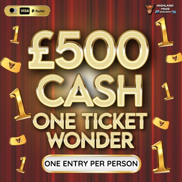 This competition is open to UK residents aged 18 or over. You may enter this competition up to 1 times. You will be randomly allocated ticket number(s) when ordering and will receive an email confirmation. The total amount of tickets for this competition is (725). If all tickets do not sell out, the draw will happen on February 24, 2025 regardless. You must answer the competition question correctly to be entered into the live draw. Incorrect entries will not be notified or entered into the live draw. You may enter the competition online, or for free by post by sending your entry to Highland Prize Giveaways on a postcard. You must have an account on Highland Prize Giveaways for your entry to be processed. All details on your entry MUST correspond to the details on your account to receive the order confirmation and ticket number. Postal entries received without a registered account cannot be processed. The live draw will take place on Highland Prize Giveaways’s Facebook page using Google’s random number generator to select the winning ticket number from all Entrants. This competition is in no way sponsored, endorsed, administered by or associated with Facebook, Apple or Google. By entering the competition, Entrants agree that neither Facebook, Apple nor Google have any liability and are not responsible for the administration or promotion of this competition.