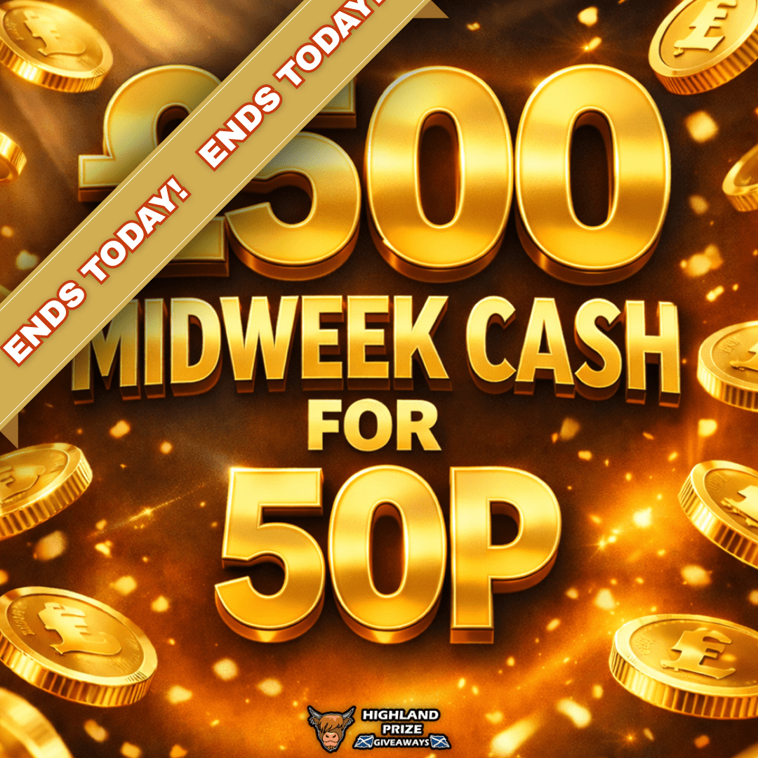 This competition is open to UK residents aged 18 or over. You may enter this competition up to 95 times. You will be randomly allocated ticket number(s) when ordering and will receive an email confirmation. The total amount of tickets for this competition is (1900). If all tickets do not sell out, the draw will happen on February 25, 2026 regardless. You must answer the competition question correctly to be entered into the live draw. Incorrect entries will not be notified or entered into the live draw. You may enter the competition online, or for free by post by sending your entry to Highland Prize Giveaways on a postcard. You must have an account on Highland Prize Giveaways for your entry to be processed. All details on your entry MUST correspond to the details on your account to receive the order confirmation and ticket number. Postal entries received without a registered account cannot be processed. The live draw will take place on Highland Prize Giveaways’s Facebook page using Google’s random number generator to select the winning ticket number from all Entrants. This competition is in no way sponsored, endorsed, administered by or associated with Facebook, Apple or Google. By entering the competition, Entrants agree that neither Facebook, Apple nor Google have any liability and are not responsible for the administration or promotion of this competition.