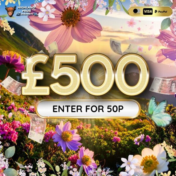 This competition is open to UK residents aged 18 or over. You may enter this competition up to 75 times. You will be randomly allocated ticket number(s) when ordering and will receive an email confirmation. The total amount of tickets for this competition is (1500). If all tickets do not sell out, the draw will happen on May 1, 2025 regardless. You must answer the competition question correctly to be entered into the live draw. Incorrect entries will not be notified or entered into the live draw. You may enter the competition online, or for free by post by sending your entry to Highland Prize Giveaways on a postcard. You must have an account on Highland Prize Giveaways for your entry to be processed. All details on your entry MUST correspond to the details on your account to receive the order confirmation and ticket number. Postal entries received without a registered account cannot be processed. The live draw will take place on Highland Prize Giveaways’s Facebook page using Google’s random number generator to select the winning ticket number from all Entrants. This competition is in no way sponsored, endorsed, administered by or associated with Facebook, Apple or Google. By entering the competition, Entrants agree that neither Facebook, Apple nor Google have any liability and are not responsible for the administration or promotion of this competition.