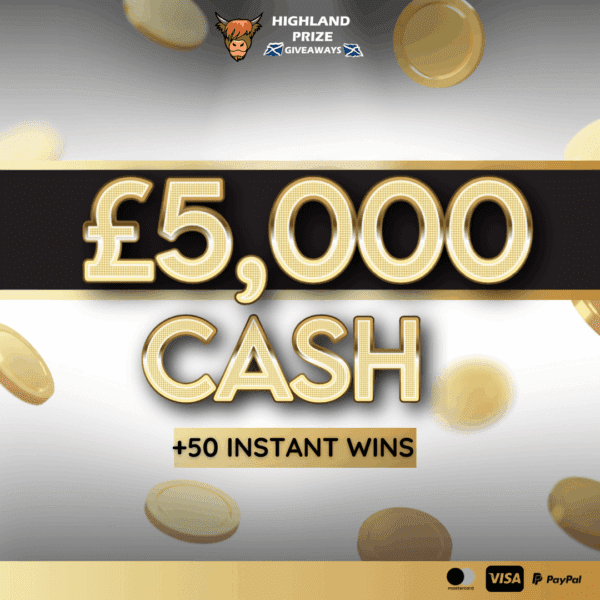 This competition is open to UK residents aged 18 or over. You may enter this competition up to 500 times. You will be randomly allocated ticket number(s) when ordering and will receive an email confirmation. The total amount of tickets for this competition is (5250). If all tickets do not sell out, the draw will happen on September 20, 2024 regardless. You must answer the competition question correctly to be entered into the live draw. Incorrect entries will not be notified or entered into the live draw. You may enter the competition online, or for free by post by sending your entry to Highland Prize Giveaways on a postcard. You must have an account on Highland Prize Giveaways for your entry to be processed. All details on your entry MUST correspond to the details on your account to receive the order confirmation and ticket number. Postal entries received without a registered account cannot be processed. The live draw will take place on Highland Prize Giveaways’s Facebook page using Google’s random number generator to select the winning ticket number from all Entrants. This competition is in no way sponsored, endorsed, administered by or associated with Facebook, Apple or Google. By entering the competition, Entrants agree that neither Facebook, Apple nor Google have any liability and are not responsible for the administration or promotion of this competition.