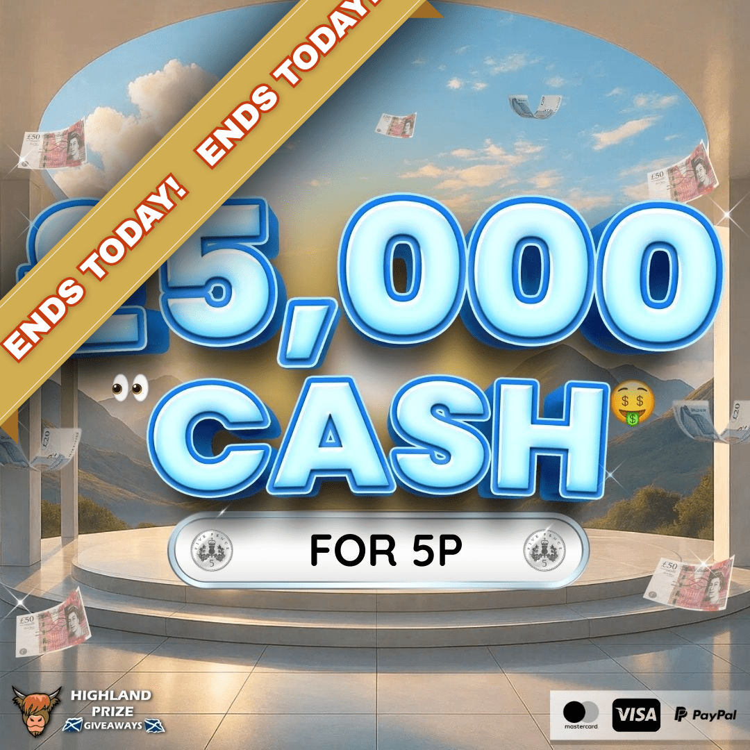 This competition is open to UK residents aged 18 or over. You may enter this competition up to 10000 times. You will be randomly allocated ticket number(s) when ordering and will receive an email confirmation. The total amount of tickets for this competition is (200000). If all tickets do not sell out, the draw will happen on November 7, 2025 regardless. You must answer the competition question correctly to be entered into the live draw. Incorrect entries will not be notified or entered into the live draw. You may enter the competition online, or for free by post by sending your entry to Highland Prize Giveaways on a postcard. You must have an account on Highland Prize Giveaways for your entry to be processed. All details on your entry MUST correspond to the details on your account to receive the order confirmation and ticket number. Postal entries received without a registered account cannot be processed. The live draw will take place on Highland Prize Giveaways’s Facebook page using Google’s random number generator to select the winning ticket number from all Entrants. This competition is in no way sponsored, endorsed, administered by or associated with Facebook, Apple or Google. By entering the competition, Entrants agree that neither Facebook, Apple nor Google have any liability and are not responsible for the administration or promotion of this competition.