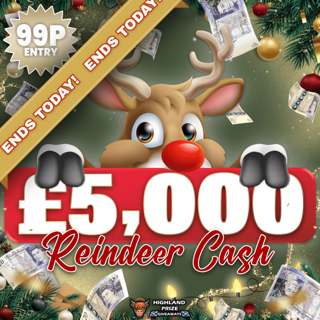This competition is open to UK residents aged 18 or over. You may enter this competition up to 410 times. You will be randomly allocated ticket number(s) when ordering and will receive an email confirmation. The total amount of tickets for this competition is (8250). If all tickets do not sell out, the draw will happen on December 10, 2025 regardless. You must answer the competition question correctly to be entered into the live draw. Incorrect entries will not be notified or entered into the live draw. You may enter the competition online, or for free by post by sending your entry to Highland Prize Giveaways on a postcard. You must have an account on Highland Prize Giveaways for your entry to be processed. All details on your entry MUST correspond to the details on your account to receive the order confirmation and ticket number. Postal entries received without a registered account cannot be processed. The live draw will take place on Highland Prize Giveaways’s Facebook page using Google’s random number generator to select the winning ticket number from all Entrants. This competition is in no way sponsored, endorsed, administered by or associated with Facebook, Apple or Google. By entering the competition, Entrants agree that neither Facebook, Apple nor Google have any liability and are not responsible for the administration or promotion of this competition.