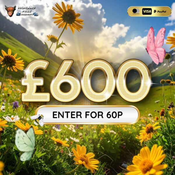 This competition is open to UK residents aged 18 or over. You may enter this competition up to 75 times. You will be randomly allocated ticket number(s) when ordering and will receive an email confirmation. The total amount of tickets for this competition is (1500). If all tickets do not sell out, the draw will happen on May 4, 2025 regardless. You must answer the competition question correctly to be entered into the live draw. Incorrect entries will not be notified or entered into the live draw. You may enter the competition online, or for free by post by sending your entry to Highland Prize Giveaways on a postcard. You must have an account on Highland Prize Giveaways for your entry to be processed. All details on your entry MUST correspond to the details on your account to receive the order confirmation and ticket number. Postal entries received without a registered account cannot be processed. The live draw will take place on Highland Prize Giveaways’s Facebook page using Google’s random number generator to select the winning ticket number from all Entrants. This competition is in no way sponsored, endorsed, administered by or associated with Facebook, Apple or Google. By entering the competition, Entrants agree that neither Facebook, Apple nor Google have any liability and are not responsible for the administration or promotion of this competition.