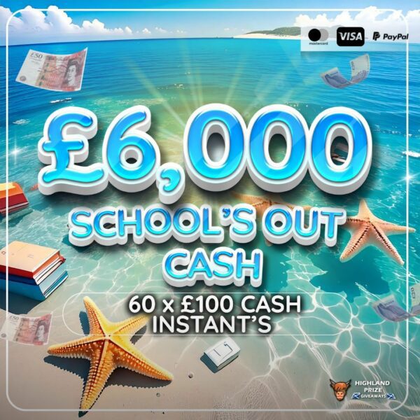 This competition is open to UK residents aged 18 or over. You may enter this competition up to 2000 times. You will be randomly allocated ticket number(s) when ordering and will receive an email confirmation. The total amount of tickets for this competition is (40000). If all tickets do not sell out, the draw will happen on July 4, 2025 regardless. You must answer the competition question correctly to be entered into the live draw. Incorrect entries will not be notified or entered into the live draw. You may enter the competition online, or for free by post by sending your entry to Highland Prize Giveaways on a postcard. You must have an account on Highland Prize Giveaways for your entry to be processed. All details on your entry MUST correspond to the details on your account to receive the order confirmation and ticket number. Postal entries received without a registered account cannot be processed. The live draw will take place on Highland Prize Giveaways’s Facebook page using Google’s random number generator to select the winning ticket number from all Entrants. This competition is in no way sponsored, endorsed, administered by or associated with Facebook, Apple or Google. By entering the competition, Entrants agree that neither Facebook, Apple nor Google have any liability and are not responsible for the administration or promotion of this competition.