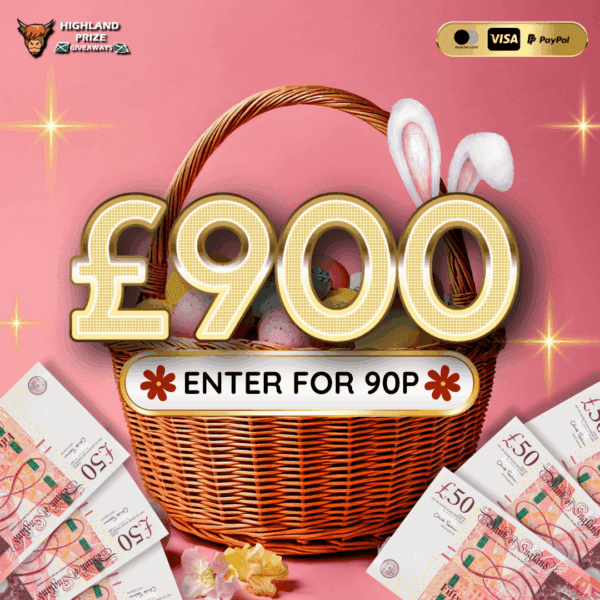 This competition is open to UK residents aged 18 or over. You may enter this competition up to 150 times. You will be randomly allocated ticket number(s) when ordering and will receive an email confirmation. The total amount of tickets for this competition is (1500). If all tickets do not sell out, the draw will happen on March 23, 2025 regardless. You must answer the competition question correctly to be entered into the live draw. Incorrect entries will not be notified or entered into the live draw. You may enter the competition online, or for free by post by sending your entry to Highland Prize Giveaways on a postcard. You must have an account on Highland Prize Giveaways for your entry to be processed. All details on your entry MUST correspond to the details on your account to receive the order confirmation and ticket number. Postal entries received without a registered account cannot be processed. The live draw will take place on Highland Prize Giveaways’s Facebook page using Google’s random number generator to select the winning ticket number from all Entrants. This competition is in no way sponsored, endorsed, administered by or associated with Facebook, Apple or Google. By entering the competition, Entrants agree that neither Facebook, Apple nor Google have any liability and are not responsible for the administration or promotion of this competition.