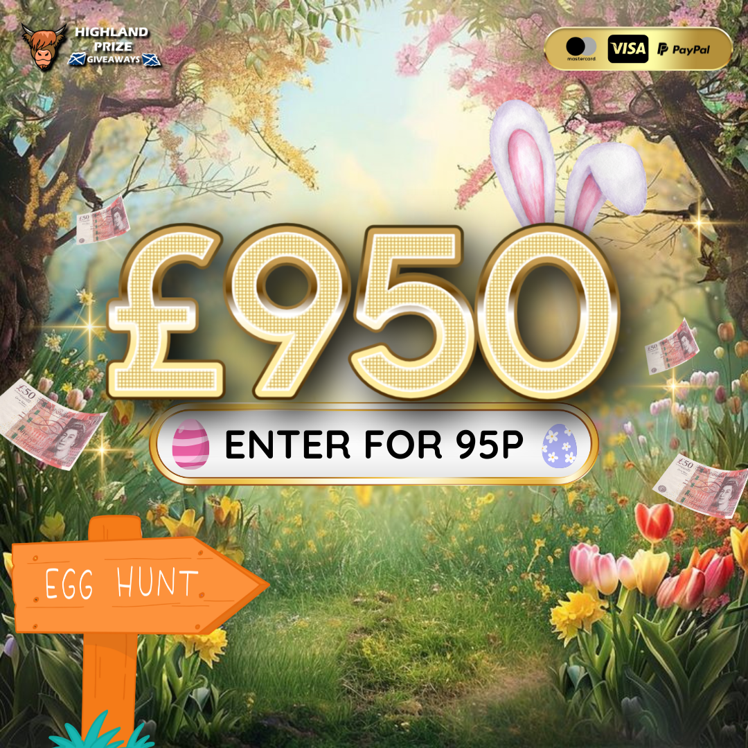 This competition is open to UK residents aged 18 or over. You may enter this competition up to 150 times. You will be randomly allocated ticket number(s) when ordering and will receive an email confirmation. The total amount of tickets for this competition is (1500). If all tickets do not sell out, the draw will happen on March 30, 2025 regardless. You must answer the competition question correctly to be entered into the live draw. Incorrect entries will not be notified or entered into the live draw. You may enter the competition online, or for free by post by sending your entry to Highland Prize Giveaways on a postcard. You must have an account on Highland Prize Giveaways for your entry to be processed. All details on your entry MUST correspond to the details on your account to receive the order confirmation and ticket number. Postal entries received without a registered account cannot be processed. The live draw will take place on Highland Prize Giveaways’s Facebook page using Google’s random number generator to select the winning ticket number from all Entrants. This competition is in no way sponsored, endorsed, administered by or associated with Facebook, Apple or Google. By entering the competition, Entrants agree that neither Facebook, Apple nor Google have any liability and are not responsible for the administration or promotion of this competition.