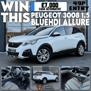 This competition is open to UK residents aged 18 or over. You may enter this competition up to 1000 times. You will be randomly allocated ticket number(s) when ordering and will receive an email confirmation. The total amount of tickets for this competition is (21750). If all tickets do not sell out, the draw will happen on July 18, 2025 regardless. You must answer the competition question correctly to be entered into the live draw. Incorrect entries will not be notified or entered into the live draw. You may enter the competition online, or for free by post by sending your entry to Highland Prize Giveaways on a postcard. You must have an account on Highland Prize Giveaways for your entry to be processed. All details on your entry MUST correspond to the details on your account to receive the order confirmation and ticket number. Postal entries received without a registered account cannot be processed. The live draw will take place on Highland Prize Giveaways’s Facebook page using Google’s random number generator to select the winning ticket number from all Entrants. This competition is in no way sponsored, endorsed, administered by or associated with Facebook, Apple or Google. By entering the competition, Entrants agree that neither Facebook, Apple nor Google have any liability and are not responsible for the administration or promotion of this competition.