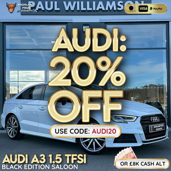 This competition is open to UK residents aged 18 or over. You may enter this competition up to 1250 times. You will be randomly allocated ticket number(s) when ordering and will receive an email confirmation. The total amount of tickets for this competition is (15750). If all tickets do not sell out, the draw will happen on April 4, 2025 regardless. You must answer the competition question correctly to be entered into the live draw. Incorrect entries will not be notified or entered into the live draw. You may enter the competition online, or for free by post by sending your entry to Highland Prize Giveaways on a postcard. You must have an account on Highland Prize Giveaways for your entry to be processed. All details on your entry MUST correspond to the details on your account to receive the order confirmation and ticket number. Postal entries received without a registered account cannot be processed. The live draw will take place on Highland Prize Giveaways’s Facebook page using Google’s random number generator to select the winning ticket number from all Entrants. This competition is in no way sponsored, endorsed, administered by or associated with Facebook, Apple or Google. By entering the competition, Entrants agree that neither Facebook, Apple nor Google have any liability and are not responsible for the administration or promotion of this competition.