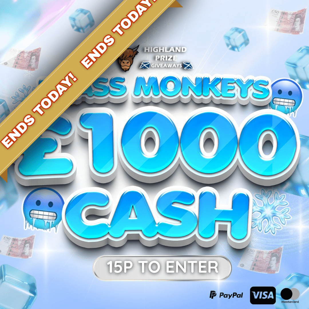 This competition is open to UK residents aged 18 or over. You may enter this competition up to 4000 times. You will be randomly allocated ticket number(s) when ordering and will receive an email confirmation. The total amount of tickets for this competition is (80000). If all tickets do not sell out, the draw will happen on November 21, 2025 regardless. You must answer the competition question correctly to be entered into the live draw. Incorrect entries will not be notified or entered into the live draw. You may enter the competition online, or for free by post by sending your entry to Highland Prize Giveaways on a postcard. You must have an account on Highland Prize Giveaways for your entry to be processed. All details on your entry MUST correspond to the details on your account to receive the order confirmation and ticket number. Postal entries received without a registered account cannot be processed. The live draw will take place on Highland Prize Giveaways’s Facebook page using Google’s random number generator to select the winning ticket number from all Entrants. This competition is in no way sponsored, endorsed, administered by or associated with Facebook, Apple or Google. By entering the competition, Entrants agree that neither Facebook, Apple nor Google have any liability and are not responsible for the administration or promotion of this competition.