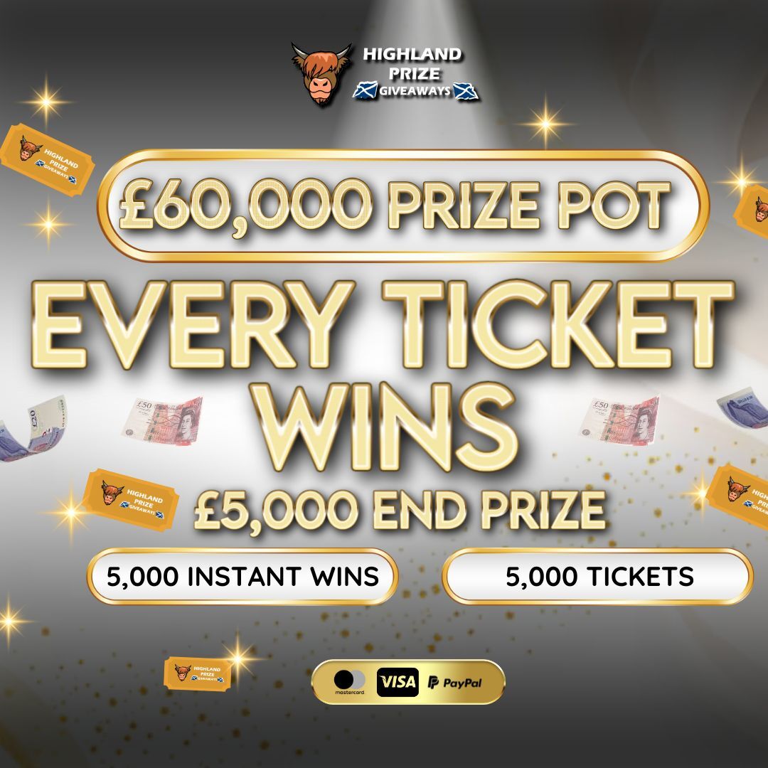 This competition is open to UK residents aged 18 or over. You may enter this competition up to 250 times. You will be randomly allocated ticket number(s) when ordering and will receive an email confirmation. The total amount of tickets for this competition is (5000). If all tickets do not sell out, the draw will happen on August 1, 2025 regardless. You must answer the competition question correctly to be entered into the live draw. Incorrect entries will not be notified or entered into the live draw. You may enter the competition online, or for free by post by sending your entry to Highland Prize Giveaways on a postcard. You must have an account on Highland Prize Giveaways for your entry to be processed. All details on your entry MUST correspond to the details on your account to receive the order confirmation and ticket number. Postal entries received without a registered account cannot be processed. The live draw will take place on Highland Prize Giveaways’s Facebook page using Google’s random number generator to select the winning ticket number from all Entrants. This competition is in no way sponsored, endorsed, administered by or associated with Facebook, Apple or Google. By entering the competition, Entrants agree that neither Facebook, Apple nor Google have any liability and are not responsible for the administration or promotion of this competition.