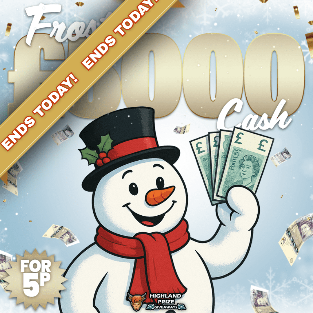 This competition is open to UK residents aged 18 or over. You may enter this competition up to 10000 times. You will be randomly allocated ticket number(s) when ordering and will receive an email confirmation. The total amount of tickets for this competition is (200000). If all tickets do not sell out, the draw will happen on January 12, 2026 regardless. You must answer the competition question correctly to be entered into the live draw. Incorrect entries will not be notified or entered into the live draw. You may enter the competition online, or for free by post by sending your entry to Highland Prize Giveaways on a postcard. You must have an account on Highland Prize Giveaways for your entry to be processed. All details on your entry MUST correspond to the details on your account to receive the order confirmation and ticket number. Postal entries received without a registered account cannot be processed. The live draw will take place on Highland Prize Giveaways’s Facebook page using Google’s random number generator to select the winning ticket number from all Entrants. This competition is in no way sponsored, endorsed, administered by or associated with Facebook, Apple or Google. By entering the competition, Entrants agree that neither Facebook, Apple nor Google have any liability and are not responsible for the administration or promotion of this competition.