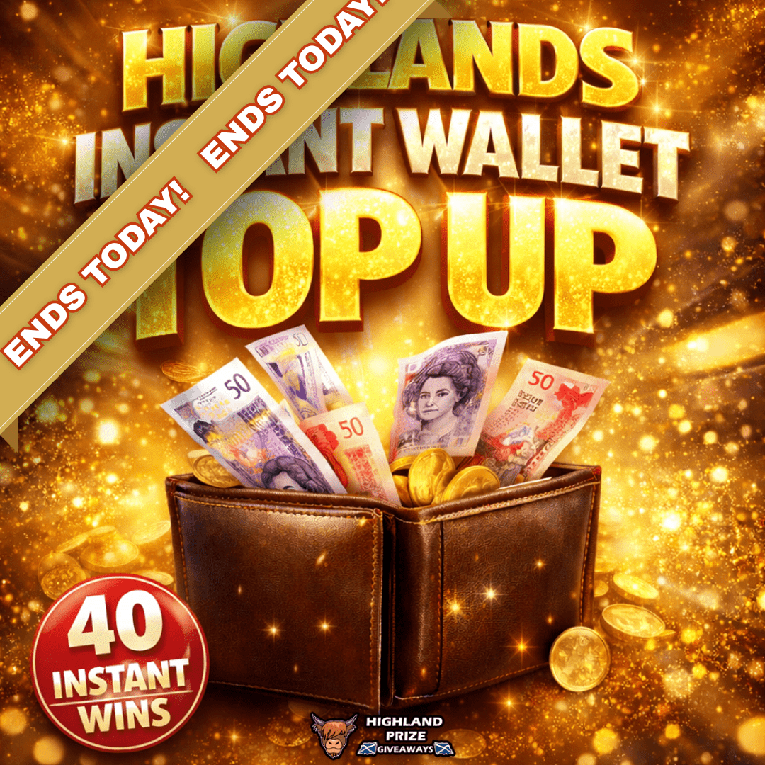 This competition is open to UK residents aged 18 or over. You may enter this competition up to 320 times. You will be randomly allocated ticket number(s) when ordering and will receive an email confirmation. The total amount of tickets for this competition is (6400). If all tickets do not sell out, the draw will happen on February 9, 2026 regardless. You must answer the competition question correctly to be entered into the live draw. Incorrect entries will not be notified or entered into the live draw. You may enter the competition online, or for free by post by sending your entry to Highland Prize Giveaways on a postcard. You must have an account on Highland Prize Giveaways for your entry to be processed. All details on your entry MUST correspond to the details on your account to receive the order confirmation and ticket number. Postal entries received without a registered account cannot be processed. The live draw will take place on Highland Prize Giveaways’s Facebook page using Google’s random number generator to select the winning ticket number from all Entrants. This competition is in no way sponsored, endorsed, administered by or associated with Facebook, Apple or Google. By entering the competition, Entrants agree that neither Facebook, Apple nor Google have any liability and are not responsible for the administration or promotion of this competition.