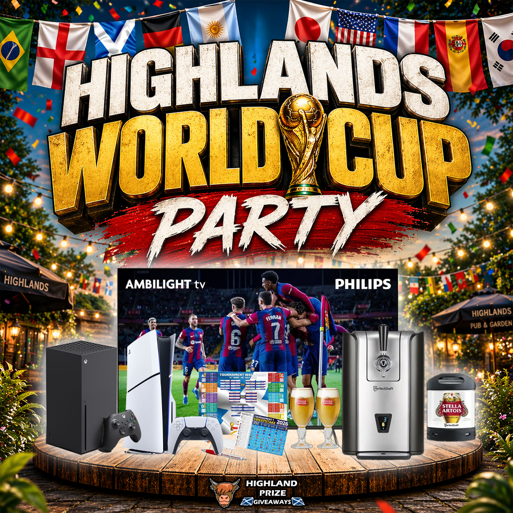 This competition is open to UK residents aged 18 or over. You may enter this competition up to 175 times. You will be randomly allocated ticket number(s) when ordering and will receive an email confirmation. The total amount of tickets for this competition is (3500). If all tickets do not sell out, the draw will happen on May 22, 2026 regardless. You must answer the competition question correctly to be entered into the live draw. Incorrect entries will not be notified or entered into the live draw. You may enter the competition online, or for free by post by sending your entry to Highland Prize Giveaways on a postcard. You must have an account on Highland Prize Giveaways for your entry to be processed. All details on your entry MUST correspond to the details on your account to receive the order confirmation and ticket number. Postal entries received without a registered account cannot be processed. The live draw will take place on Highland Prize Giveaways’s Facebook page using Google’s random number generator to select the winning ticket number from all Entrants. This competition is in no way sponsored, endorsed, administered by or associated with Facebook, Apple or Google. By entering the competition, Entrants agree that neither Facebook, Apple nor Google have any liability and are not responsible for the administration or promotion of this competition.