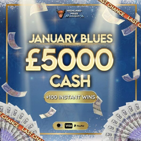 This competition is open to UK residents aged 18 or over. You may enter this competition up to 999 times. You will be randomly allocated ticket number(s) when ordering and will receive an email confirmation. The total amount of tickets for this competition is (11250). If all tickets do not sell out, the draw will happen on January 17, 2025 regardless. You must answer the competition question correctly to be entered into the live draw. Incorrect entries will not be notified or entered into the live draw. You may enter the competition online, or for free by post by sending your entry to Highland Prize Giveaways on a postcard. You must have an account on Highland Prize Giveaways for your entry to be processed. All details on your entry MUST correspond to the details on your account to receive the order confirmation and ticket number. Postal entries received without a registered account cannot be processed. The live draw will take place on Highland Prize Giveaways’s Facebook page using Google’s random number generator to select the winning ticket number from all Entrants. This competition is in no way sponsored, endorsed, administered by or associated with Facebook, Apple or Google. By entering the competition, Entrants agree that neither Facebook, Apple nor Google have any liability and are not responsible for the administration or promotion of this competition.