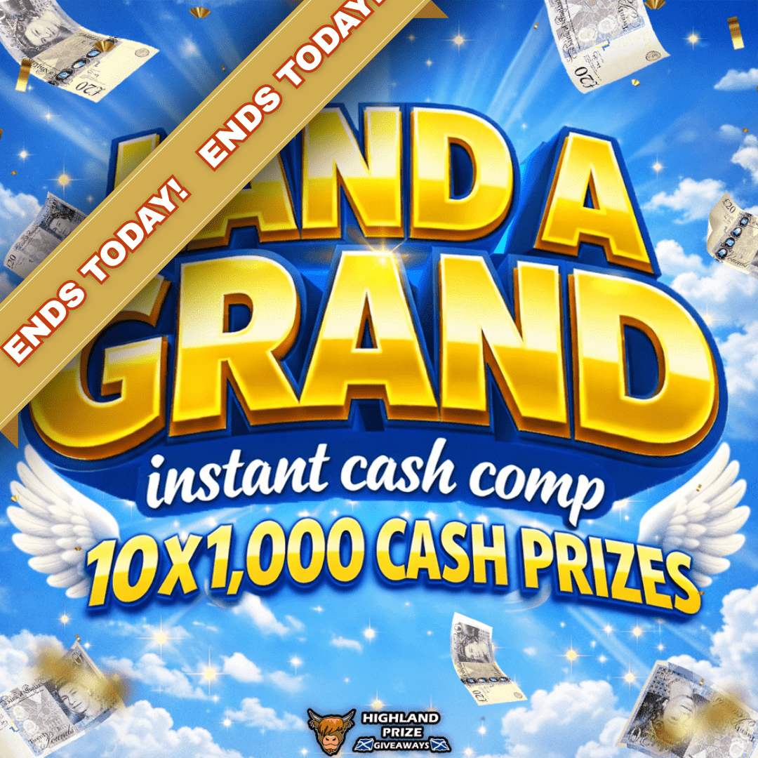 This competition is open to UK residents aged 18 or over. You may enter this competition up to 875 times. You will be randomly allocated ticket number(s) when ordering and will receive an email confirmation. The total amount of tickets for this competition is (17500). If all tickets do not sell out, the draw will happen on March 2, 2026 regardless. You must answer the competition question correctly to be entered into the live draw. Incorrect entries will not be notified or entered into the live draw. You may enter the competition online, or for free by post by sending your entry to Highland Prize Giveaways on a postcard. You must have an account on Highland Prize Giveaways for your entry to be processed. All details on your entry MUST correspond to the details on your account to receive the order confirmation and ticket number. Postal entries received without a registered account cannot be processed. The live draw will take place on Highland Prize Giveaways’s Facebook page using Google’s random number generator to select the winning ticket number from all Entrants. This competition is in no way sponsored, endorsed, administered by or associated with Facebook, Apple or Google. By entering the competition, Entrants agree that neither Facebook, Apple nor Google have any liability and are not responsible for the administration or promotion of this competition.