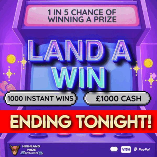 This competition is open to UK residents aged 18 or over. You may enter this competition up to 250 times. You will be randomly allocated ticket number(s) when ordering and will receive an email confirmation. The total amount of tickets for this competition is (5000). If all tickets do not sell out, the draw will happen on May 28, 2025 regardless. You must answer the competition question correctly to be entered into the live draw. Incorrect entries will not be notified or entered into the live draw. You may enter the competition online, or for free by post by sending your entry to Highland Prize Giveaways on a postcard. You must have an account on Highland Prize Giveaways for your entry to be processed. All details on your entry MUST correspond to the details on your account to receive the order confirmation and ticket number. Postal entries received without a registered account cannot be processed. The live draw will take place on Highland Prize Giveaways’s Facebook page using Google’s random number generator to select the winning ticket number from all Entrants. This competition is in no way sponsored, endorsed, administered by or associated with Facebook, Apple or Google. By entering the competition, Entrants agree that neither Facebook, Apple nor Google have any liability and are not responsible for the administration or promotion of this competition.