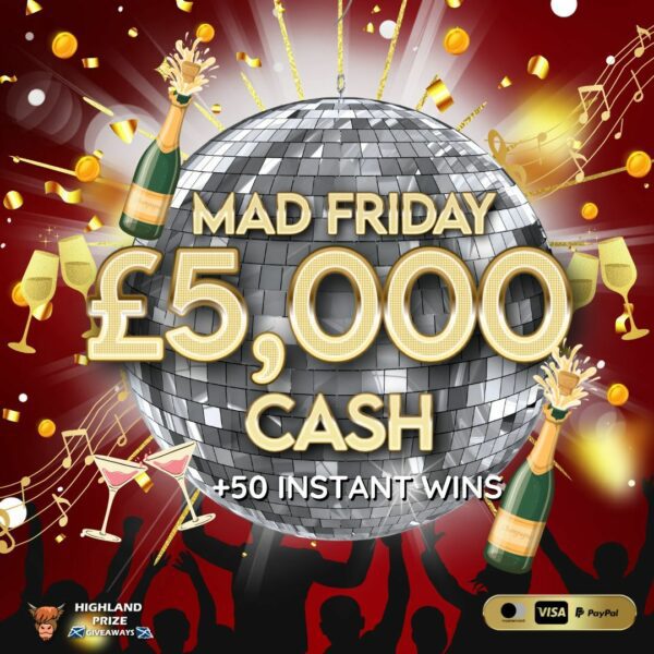 This competition is open to UK residents aged 18 or over. You may enter this competition up to 400 times. You will be randomly allocated ticket number(s) when ordering and will receive an email confirmation. The total amount of tickets for this competition is (8000). If all tickets do not sell out, the draw will happen on December 19, 2025 regardless. You must answer the competition question correctly to be entered into the live draw. Incorrect entries will not be notified or entered into the live draw. You may enter the competition online, or for free by post by sending your entry to Highland Prize Giveaways on a postcard. You must have an account on Highland Prize Giveaways for your entry to be processed. All details on your entry MUST correspond to the details on your account to receive the order confirmation and ticket number. Postal entries received without a registered account cannot be processed. The live draw will take place on Highland Prize Giveaways’s Facebook page using Google’s random number generator to select the winning ticket number from all Entrants. This competition is in no way sponsored, endorsed, administered by or associated with Facebook, Apple or Google. By entering the competition, Entrants agree that neither Facebook, Apple nor Google have any liability and are not responsible for the administration or promotion of this competition.