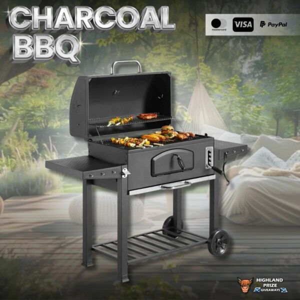 • CREATE THE PERFECT TEMPERATURE: Use the temperature gauge to monitor the charcoal BBQ without lifting the lid. To refuel, simply open the front door and add more – no need to remove the grill