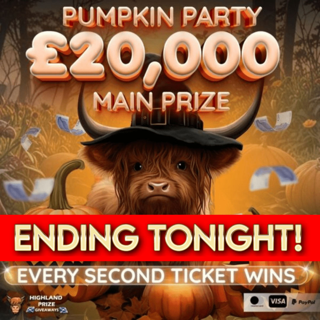 This competition is open to UK residents aged 18 or over. You may enter this competition up to 775 times. You will be randomly allocated ticket number(s) when ordering and will receive an email confirmation. The total amount of tickets for this competition is (15500). If all tickets do not sell out, the draw will happen on October 31, 2025 regardless. You must answer the competition question correctly to be entered into the live draw. Incorrect entries will not be notified or entered into the live draw. You may enter the competition online, or for free by post by sending your entry to Highland Prize Giveaways on a postcard. You must have an account on Highland Prize Giveaways for your entry to be processed. All details on your entry MUST correspond to the details on your account to receive the order confirmation and ticket number. Postal entries received without a registered account cannot be processed. The live draw will take place on Highland Prize Giveaways’s Facebook page using Google’s random number generator to select the winning ticket number from all Entrants. This competition is in no way sponsored, endorsed, administered by or associated with Facebook, Apple or Google. By entering the competition, Entrants agree that neither Facebook, Apple nor Google have any liability and are not responsible for the administration or promotion of this competition.