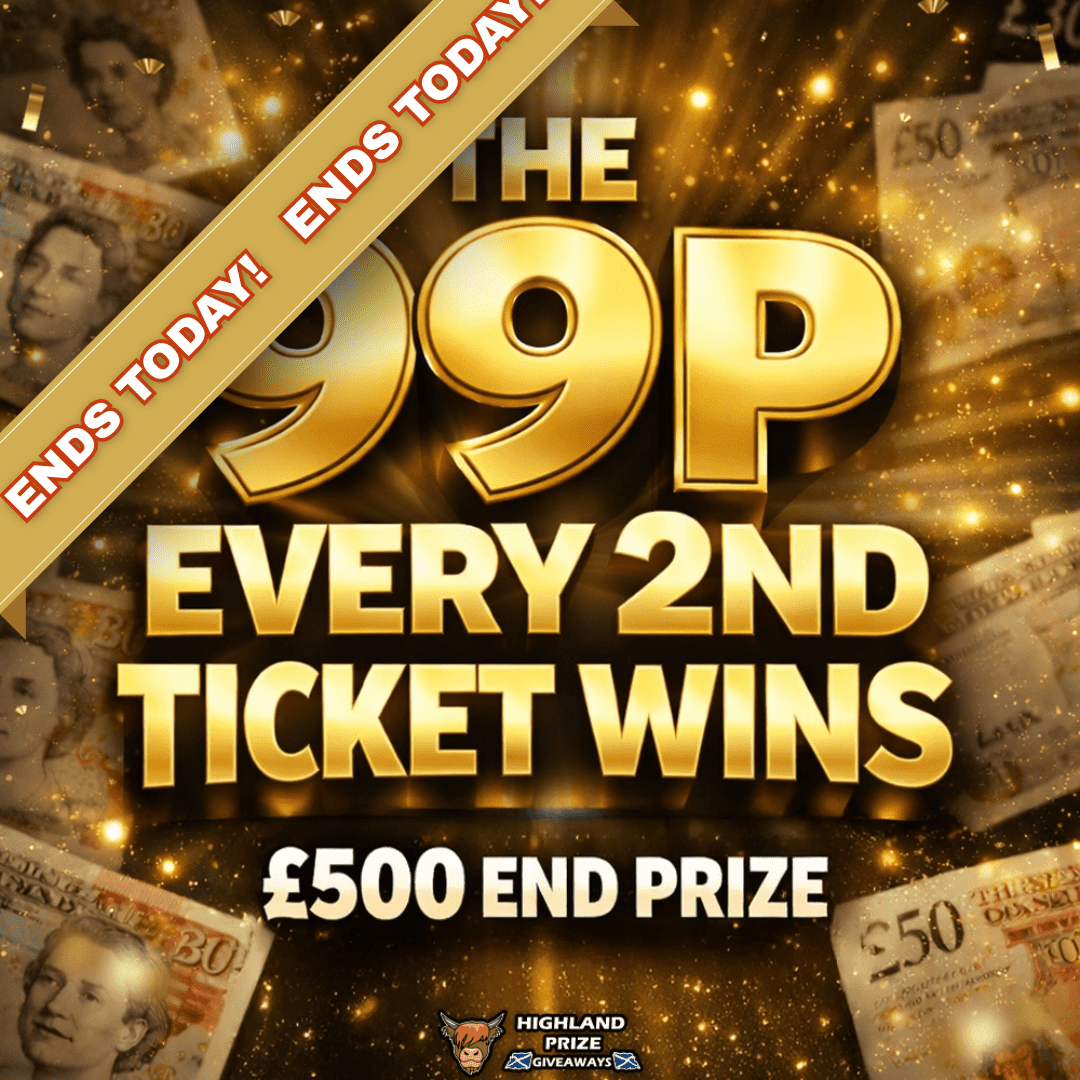 This competition is open to UK residents aged 18 or over. You may enter this competition up to 775 times. You will be randomly allocated ticket number(s) when ordering and will receive an email confirmation. The total amount of tickets for this competition is (15500). If all tickets do not sell out, the draw will happen on March 11, 2026 regardless. You must answer the competition question correctly to be entered into the live draw. Incorrect entries will not be notified or entered into the live draw. You may enter the competition online, or for free by post by sending your entry to Highland Prize Giveaways on a postcard. You must have an account on Highland Prize Giveaways for your entry to be processed. All details on your entry MUST correspond to the details on your account to receive the order confirmation and ticket number. Postal entries received without a registered account cannot be processed. The live draw will take place on Highland Prize Giveaways’s Facebook page using Google’s random number generator to select the winning ticket number from all Entrants. This competition is in no way sponsored, endorsed, administered by or associated with Facebook, Apple or Google. By entering the competition, Entrants agree that neither Facebook, Apple nor Google have any liability and are not responsible for the administration or promotion of this competition.